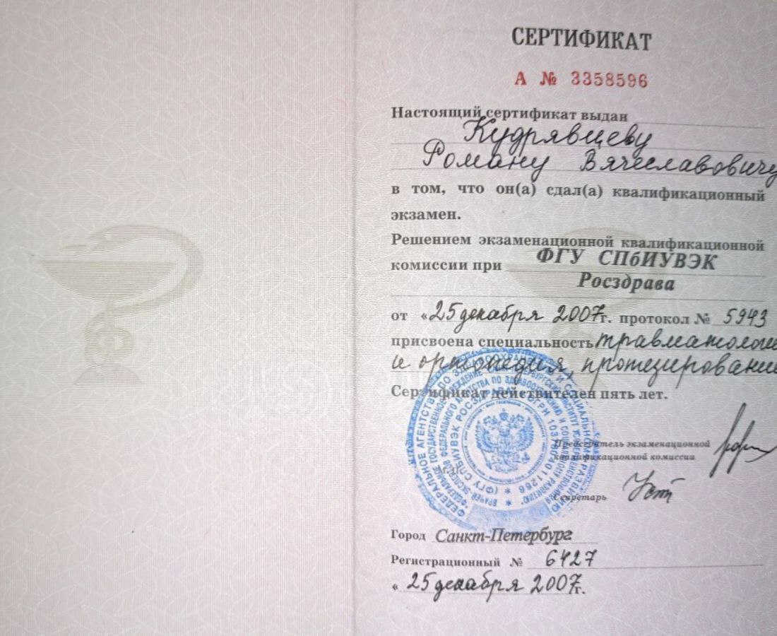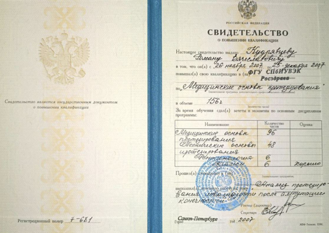• СПбНЦЭР им. Альбрехта Росздрава, клиника НИИ протезирования, г. Санкт-Петербург, врач травматолог-ортопед – хирургическое лечение, протезирование и ортезирование нижних конечностей.